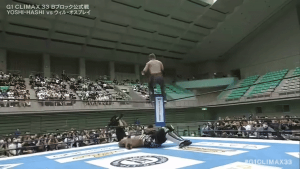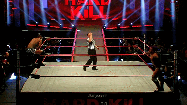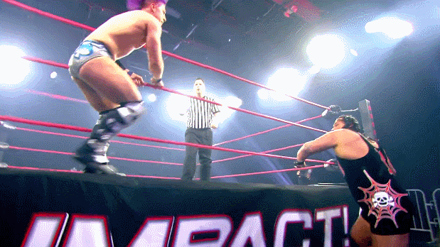 AVALANCHE HEADSCISSORS TAKEDOWN INTO THE RING,