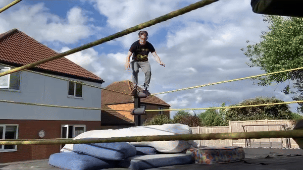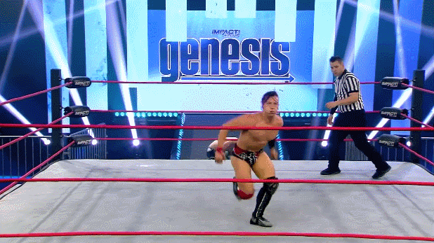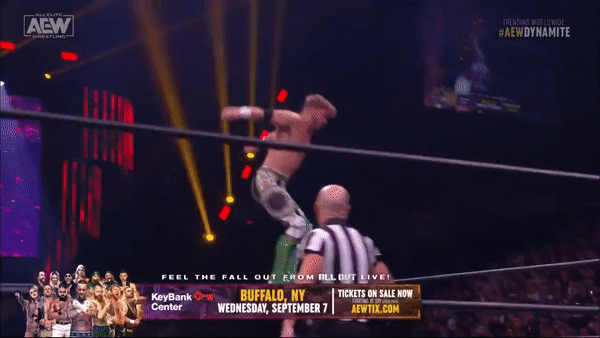 ROPE FLIP ESCAPE DROPKICK INTO A SPRINGBOARD CLOTHESLINE,