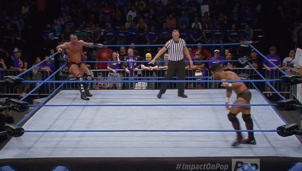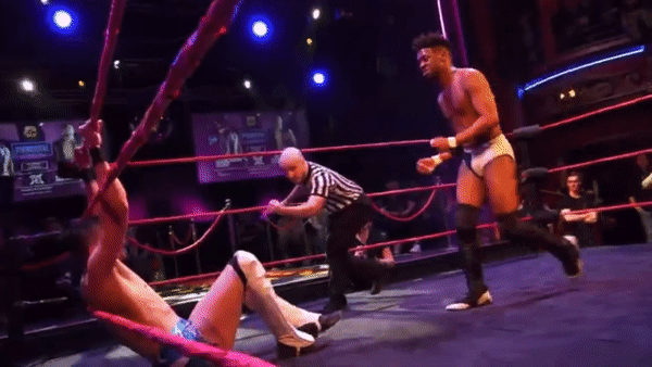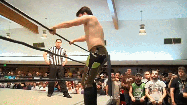 ROPE FLIP ESCAPE DROPKICK INTO A SPRINGBOARD CLOTHESLINE,